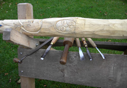 Exploring images and totems that have relevance to your life, history and environment you will be guided through drawing up your design ready for setting out on to your prepared Sweet Chestnut pole. We will work through the techniques involved in carving low and deep relief in the round and you will become familiar with the appropriate selection of tools for the job.